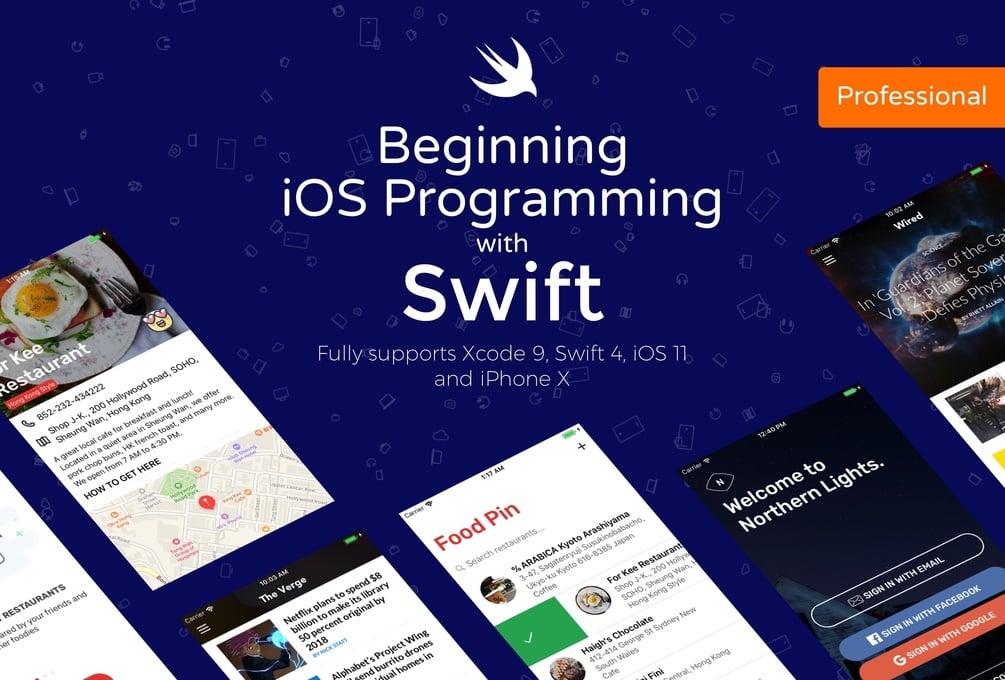 Learn iOS Programming in Swift by building a real world app from scratch. This is the professional package of our Beginning iOS Programming with Swift course. It includes all the learning materials, app projects and design tips that help you become a professional iOS developer.